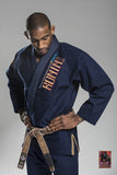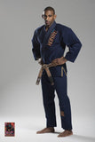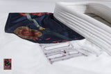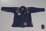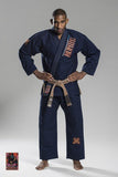 The significance of tying in the chrysanthemum flowers and the sword with this gi is because the Emperor of Japan would sit on a Chrysanthemum Throne and always would have his sword by his side at all times.
