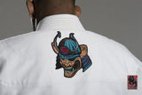 -Rear upper jacket – 12 color Samurai Head with full direct embroidery.