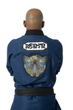 Emblem of Transformation: The gi is adorned with an elegant embroidery of the Death's Head Hawk Moth, a symbol of life, death, and rebirth. This motif echoes the warrior's preparedness in the serene yet ever-changing garden of life.