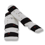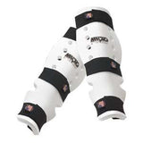 Macho Shin/Instep Contoured for full knee to instep coverage. Protective foam insert. 2 inch wide strap holds securely. Made in the USA. Available in White. Sizes: Child, Adult S, M, L or XL