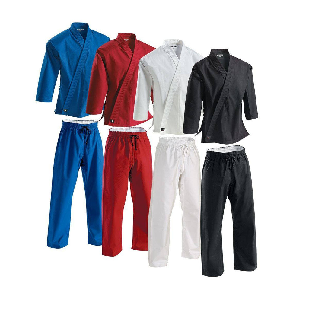 The Century Middleweight 8 oz Karate gi is a traditional uniform constructed to meet your every need. It is crafted from an 8 oz brushed cotton canvas material, is available in Black, Red, White, or Blue, and can be ordered as a set or in separates.