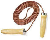 Hardwood Handle Jumprope - Leather Cord Hardwood handles. 9'6" quality, professional leather braided cord. Handles contain ball-bearing action for easier spinning and a better workout.