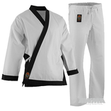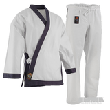 The jacket and pants which feature a full cut sizing, are reinforced at all the key stress points making it excellent for any level of training. The set includes a jacket (trimmed in blue or black) and traditional drawstring pants. No belt is included with this uniform.