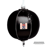 There are sewn in steel rings that have been reinforced to help this ball last. It should be suspended at shoulder level. This Double End Striking Ball will help you to gain not only speed, but accuracy as well. The leather is very high quality and can withstand a very hard workout. It is recommended, however, that you re-inflate the ball before you begin your workout with it to help the ball to last as well as to give you a better workout.