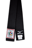 Mizuno's beautiful, silver embroidered Black belt is now available with IJF Approved red label. Belt displays a very cool and unique silver embroidered label.