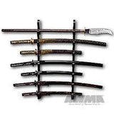 Black Lacquered Wall Sword Display If you dont have the space for our other displays, how about this great display that easily mounts to almost any wall. Display holds up to 7 swords (sold separately). Includes all mounting hardware.