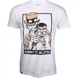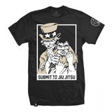 A salute to Jiu-Jitsu's popularity on American soil, the Uncle Newaza T-Shirt features an Uncle Sam style character putting a RNC on a dude, with the text "Submit to Jiu Jitsu" underneath.