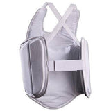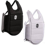 Key Features Lite Weight. Adjustable elastic strap with hoop & loop closure. Worn underbeath uniform. Sizes XS - XL. Comes in Black and White. About This Item - This chest guard can be worn underneath the uniform. - Lite weight foam padding provides a comfy fit for extra mobility & flexibility. - Great for practice or competition and close quarter combat action. - Adjustable elastic strap with hook & loop closure. - Five (5) sizes available XS, SM, MD, LG, & XL in black or white.