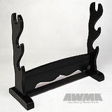 This is the ideal stand for your sword sets. Black lacquered wood holds 3 swords. 16" wide x 6" deep x 14" tall. Some assembly required.