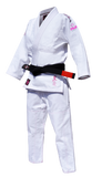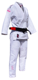 The Fuji All Around Pink BJJ Gi was designed by women for women, and features slightly shorter arms, tapered sleeves, tapered pants, and a smaller waist line for a truly comfortable fit. This unique gi comes embroidered with the Breast Cancer Ribbon in white on both the jacket and the pants - a percentage of all sales of the Fuji Pink Gi will be donated to the Susan G. Komen Foundation for the Cure.